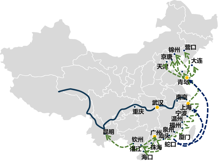 始于2003年, 服务覆盖全国重要港口,辐射沿海各省市,通过多式联运,提供门到门的一站式集装箱运输服务